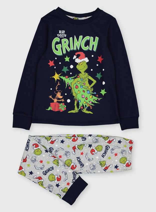 Kids Christmas The Grinch Navy Grey Pyjamas 3 12 Years Tu Clothing