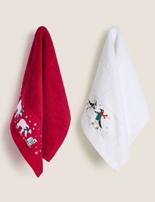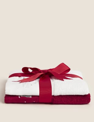 2 Pack Pure Cotton Christmas Towels M S